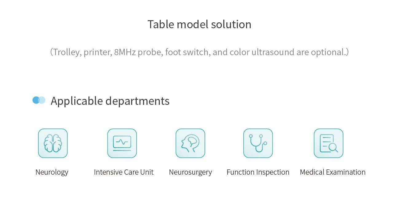 The TCD is equipped with a monitoring probe and probe cover, which can realize monitoring function, mainly used for blood flow measurement of cerebral, cervical, and peripheral vessels.