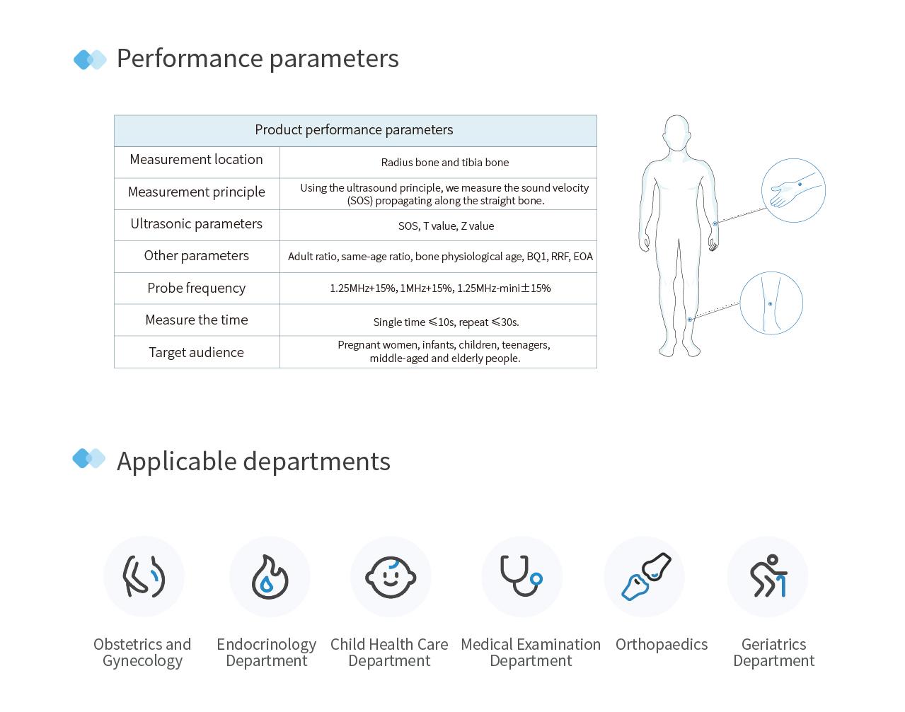 Scope of Application: Uses ultrasound to detect the bone density value of patella or phalanx.