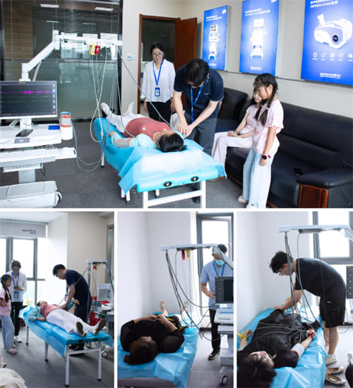 本次參觀體驗活動的主要內容之一是為員工家屬進行健康體檢。家人們饒有興趣地體驗各類體檢設備,咨詢各種參數的臨床意義。