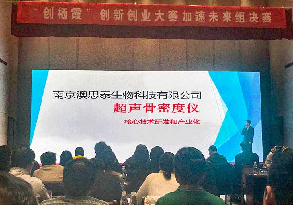 2019年4月15日,首屆“創(chuàng)棲霞”創(chuàng)新創(chuàng)業(yè)大賽頒獎典禮在南京紫東生態(tài)會議中心隆重舉行,澳思泰參賽項目“超聲骨密度儀核心技術(shù)研發(fā)”榮獲“加速未來組”三等獎。