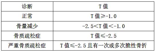 骨質(zhì)疏松癥: T-值: -2.5 SD 以下