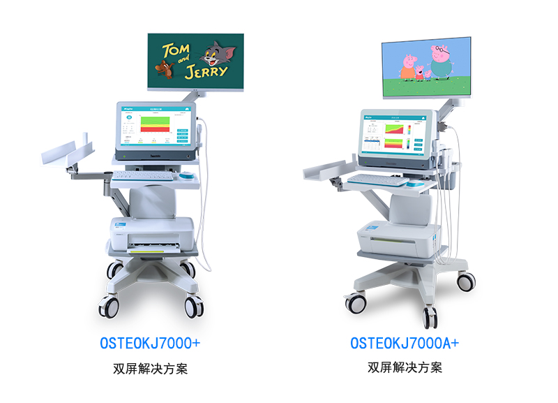南京科進實業(yè)有限公司的超聲骨密度儀OSTEOKJ7000+雙屏臺車解決方案進行兒童骨密度測定。大量臨床研究證實,該儀器能快速靈敏反應兒童骨質情況,適用于不同年齡的兒童人群,而且采用超聲波測量法,操作簡單,無創(chuàng),。此外,這款超聲骨密度儀的全套解決方案配備雙屏顯示,可播放兒童動畫功能,在檢測過程中,吸引兒童注意力,方便醫(yī)生操作儀器,更適用兒童的骨密度測定。定期監(jiān)測骨密度不僅可以篩查鈣缺乏,而且能評估臨床干預效果。